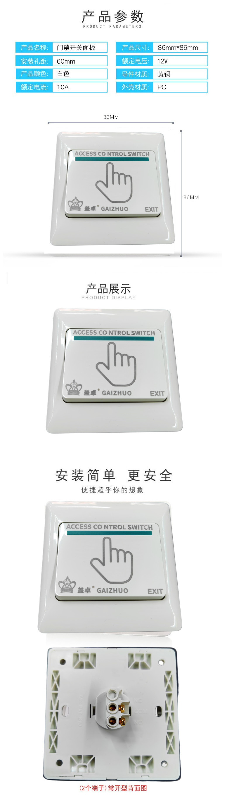 门禁开关86型按钮自动复位出门